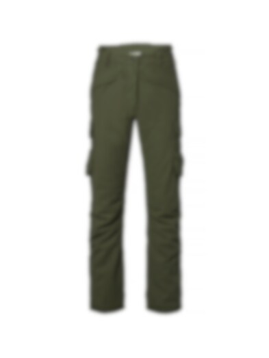 Basset Pants är ett par varma, vadderade jaktbyxor till dam tillverkade i ett mjukt borstat yttertyg av återvunnen polyester. Byxan är vindtät och vattentät med en kvinnlig passform.