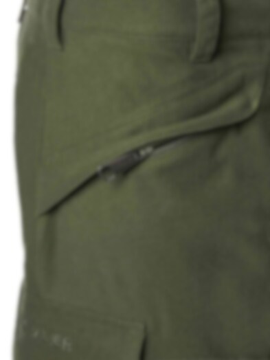 - På benens utsidor sitter bälgfickor varav den högra har en säkerhetsficka med dragkedja.