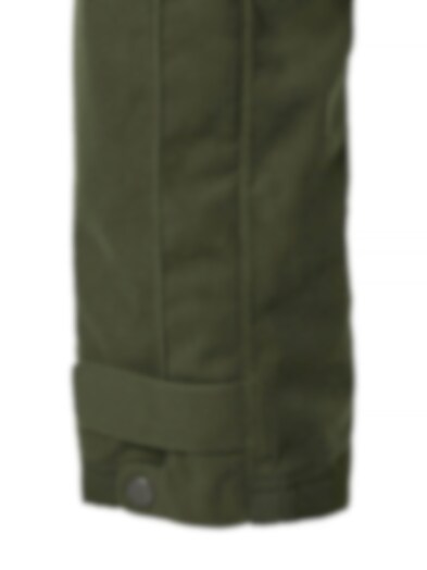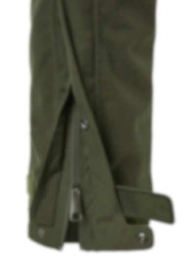 - Bensluten är försedda med vattenavvisande tvåvägsdragkedjor från YKK och i nederkant förstärkta med ett tyg av Ripstop Cordura.
