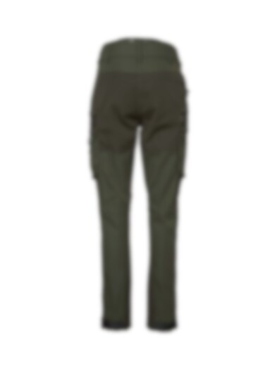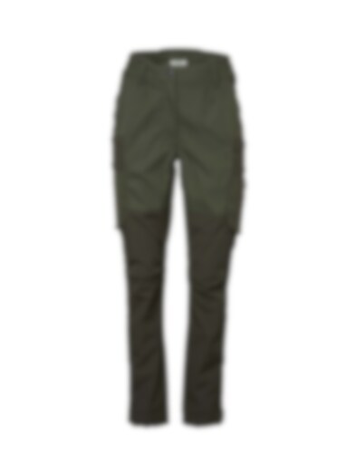 Cross Hybrid Pants Dam är en mycket användbar och funktionell jaktbyxa tillverkad i två olika tyger. Det stretchiga tyget i polyester gör att byxan blir följsam och flexibel medan förstärkningarna i Ripstop Cordura® på rumpa och knän gör byxorna tåliga och hållbara. Ripstop Corduratyget är försett med ett membran på insidan vilket gör byxorna delvis vattentäta och betyder att du klarar dig mot väta om du sätter dig ner på en våt stubbe eller sitter på knä i mossan. Membrantyget har en mjuk borstad insida vilket ger byxan en behaglig känsla mot huden. Linningen är något högre baktill vilket gör att den sluter till bekvämt mot ryggslutet, den är även försedd med hällor och knappar att fästa hängslen i. Jaktbyxan har två framfickor, en bakficka och två dragkedjeförsedda benfickor. Bilnycklarna kan du förvara säkert i en mindre säkerhetsficka med dragkedja som finns placerad inne i den ena benfickan. Cross Hybrid Pants Dam har ergonomiskt förböjda ben och tvåvägsdragkedjor i sidorna från knäna och nedåt för ventilation. På insidan av byxbenets fåll framtill finns en hake att fästa i kängorna, för att hålla byxan på plats, och undvika att den glider upp. Passar perfekt med ett par hängslen!