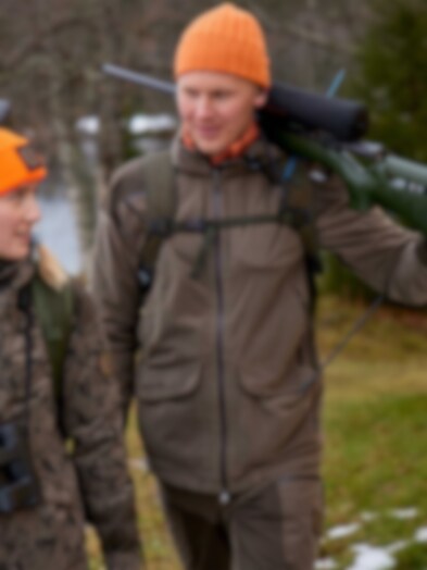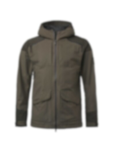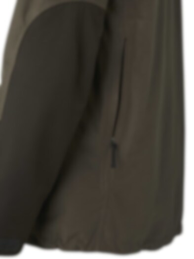 Denna jaktjacka är vattentät och vindtät tack vare vårt Chevalite-membran samt att alla sömmar är tejpade. Framtill har denna jaktjacka en vattenavvisande tvåvägsdragkedja från YKK. Pointer 3.0 jacka har en rad praktiska funktioner som rymliga fleecefodrade hängfickor, bälgfickor med fleecefoder, dubbla radiofickor och en rejäl ryggficka. Inuti jackan finns en innerficka med dragkedja för förvaring av nycklar och liknande. Denna skaljacka har mycket bra ventilationsmöjligheter med tvåvägsdragkedja framtill och dragkedjor under båda ärmarna. En tryckknapp i fållen framtill håller jackans framstycken på plats även om dragkedjan fram öppnas för ventilation. Jackan är anpassad för aktivitet och rörlighet genom sitt mjuka stretchiga material och sin ergonomiska passform med bland annat förböjda ärmar. Den har förstärkningstyg på axel- och armbågspartier. Vidden går att justera både i fåll och i ärmslut. Jackan har en rejäl huva med tvåvägsjustering som får huvan att sluta tätt kring huvudet med ett enkelt enhandsgrepp.Huvudmaterialet och de två olika fodertygerna är gjorda i återvunnen polyester.