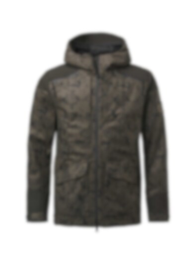 Denna jaktjacka är vattentät och vindtät tack vare vårt Chevalite-membran samt att alla sömmar är tejpade. Framtill har denna jaktjacka en vattenavvisande tvåvägsdragkedja från YKK. Pointer 3.0 jacka har en rad praktiska funktioner som rymliga fleecefodrade hängfickor, bälgfickor med fleecefoder, dubbla radiofickor och en rejäl ryggficka. Inuti jackan finns en innerficka med dragkedja för förvaring av nycklar och liknande. Denna skaljacka har mycket bra ventilationsmöjligheter med tvåvägsdragkedja framtill och dragkedjor under båda ärmarna. En tryckknapp i fållen framtill håller jackans framstycken på plats även om dragkedjan fram öppnas för ventilation. Jackan är anpassad för aktivitet och rörlighet genom sitt mjuka stretchiga material och sin ergonomiska passform med bland annat förböjda ärmar. Den har förstärkningstyg på axel- och armbågspartier. Vidden går att justera både i fåll och i ärmslut. Jackan har en rejäl huva med tvåvägsjustering som får huvan att sluta tätt kring huvudet med ett enkelt enhandsgrepp.Huvudmaterialet och de två olika fodertygerna är gjorda i återvunnen polyester.