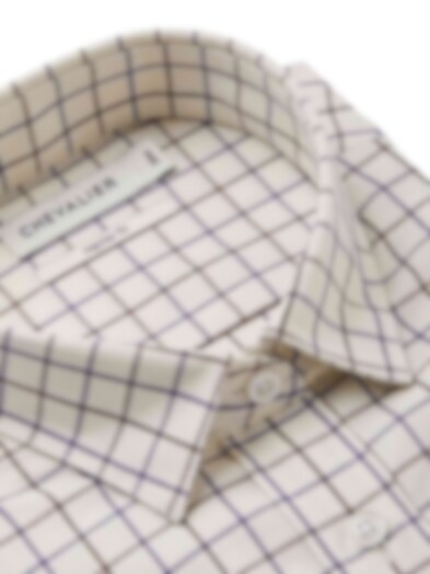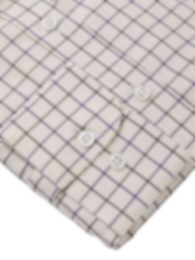 - Cremefärgad botten med lila och brun ruta i Tattersall.