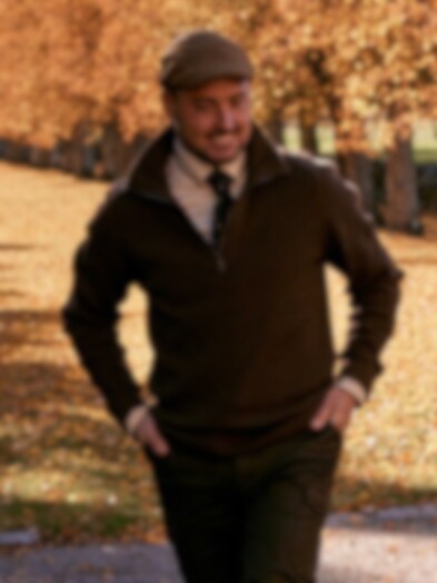 Artikelnummer 1240008_7023Stickad tröja med aktiv passform - Ull - Halvpolo med dragkedja