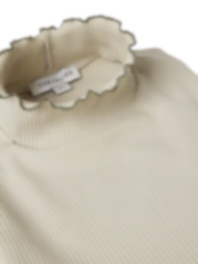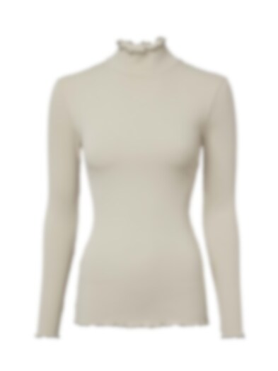 Artikelnummer 1230005_7016Bomullströja med högre krage – Krusad kant på krage och ärm – Ekologisk bomull
