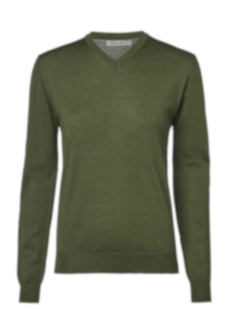 Chevaliers damtröja är stickad i ett högkvalitativt, tvåtrådigt merinogarn som kommer från italienska producenten Tollegno. Garnet har extra långa ullfiber vilket ger denna pullover en vacker lyster. Det här är ett mycket användbart plagg. Du kan bära den som den är, under västen eller som ett värmande mellanlager under en kavaj. Ull är naturens egen high-techfiber och har både en värmande och en svalkande funktion. Självklart är ullen framställd utan mulesing.