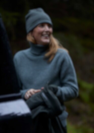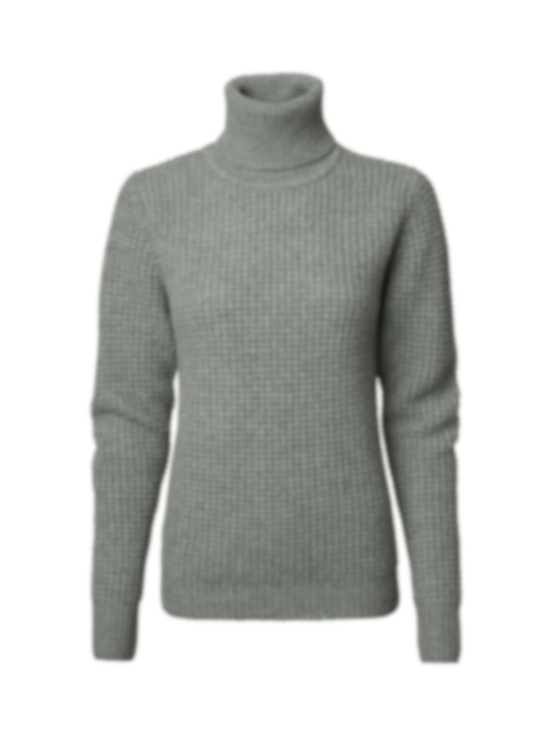 Cherry är en tjock, mönsterstickad polotröja för dam. Sticktekniken kallas pineappleknit vilket ger en vacker struktur men gör tröjan tjockare och därmed varmare. Garnet består till 80 procent av ull. Cherry rollneck är ett plagg du har användning för året om. En kraftigare ulltröja som ändå har en nätt form. Tales collection. Limited edition.