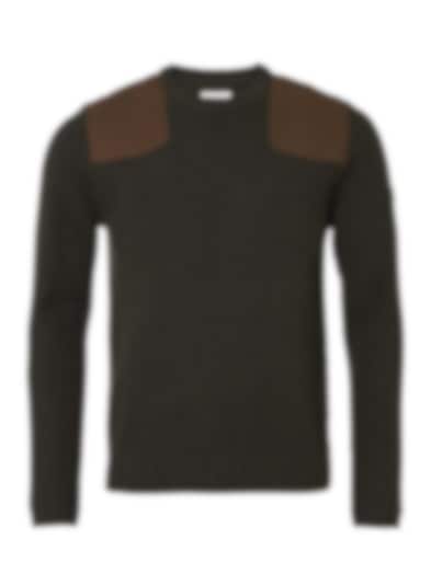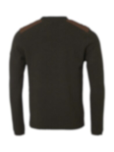Artikelnummer 1210018_6003Stickad tröja – Lammull – Förstärkningar i alcantara på axlarna